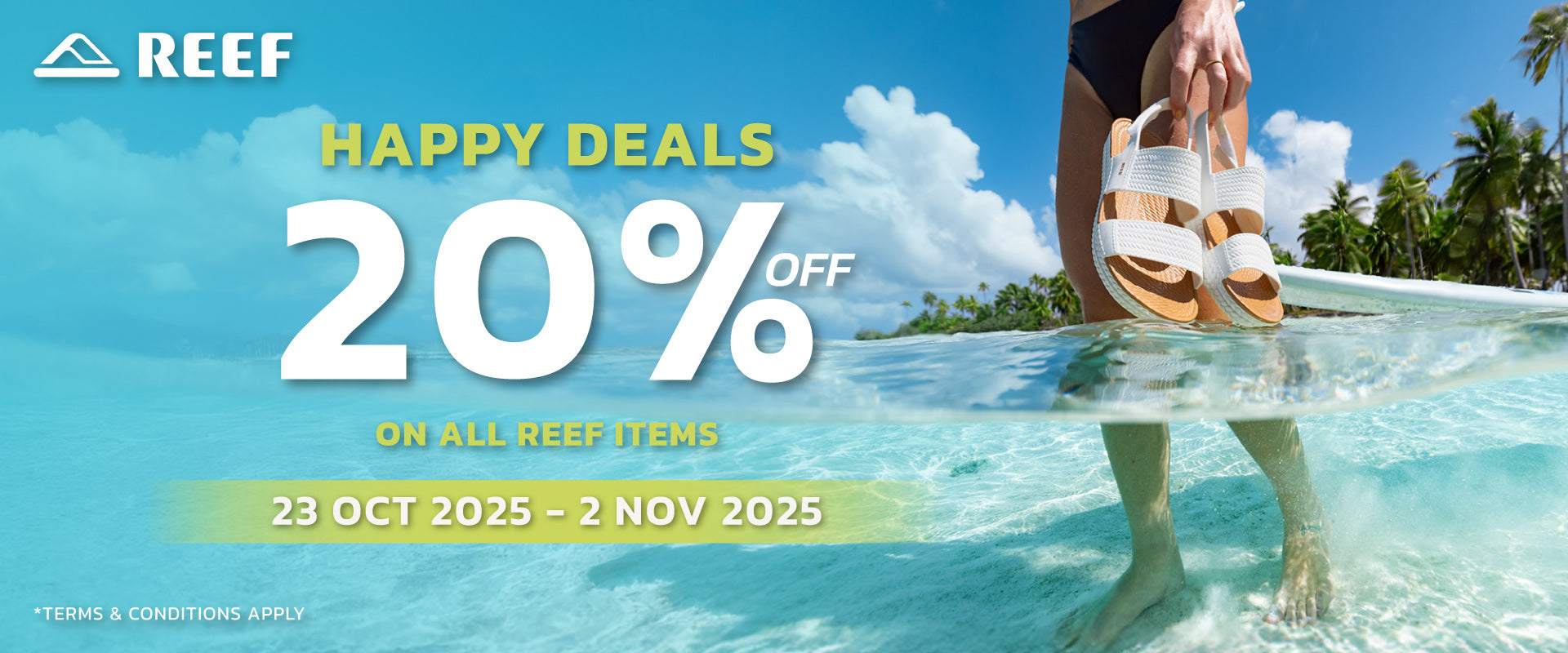 - โปรโมชั่นส่วนลด 20% off ระหว่างวันที่ 23 ต.ค. 2568 - 2 พ.ย. 2568 สำหรับสินค้า Reef ทุกรายการ