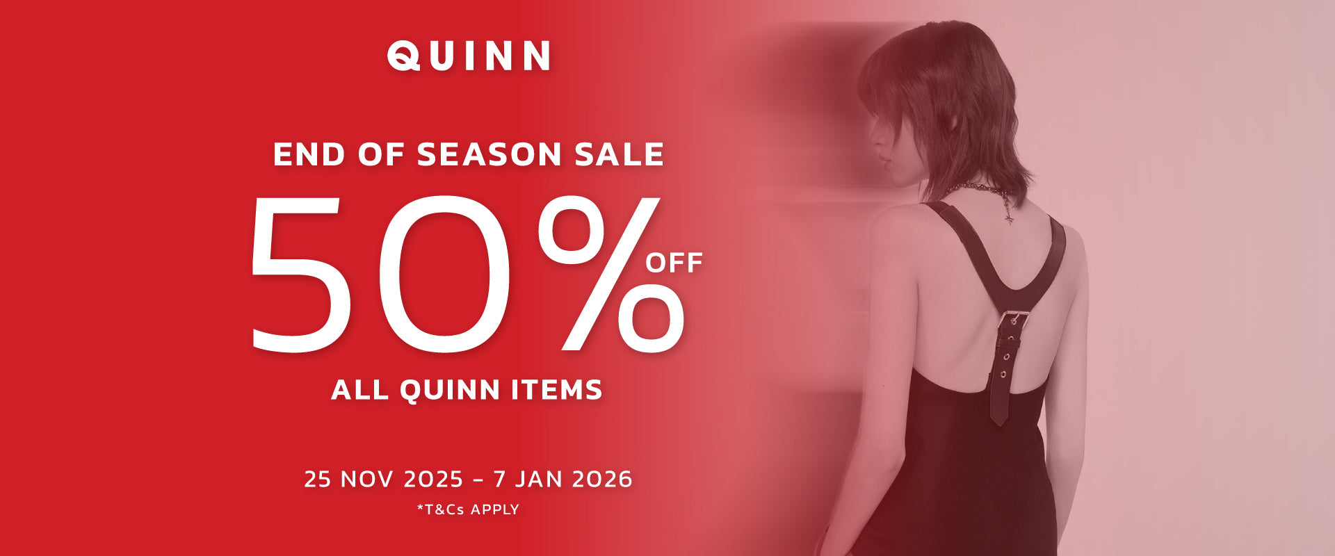 - Promotion offers 50% off applicable for all Quinn items on 25 November 2025 - 7 January 2026.